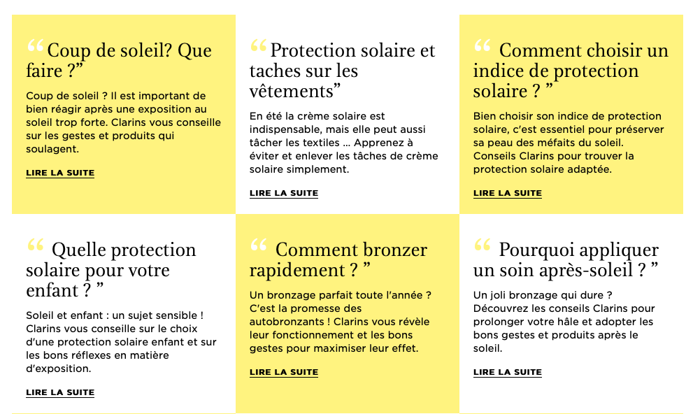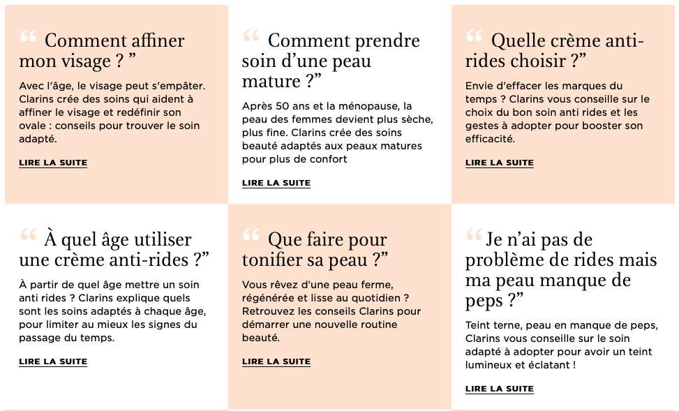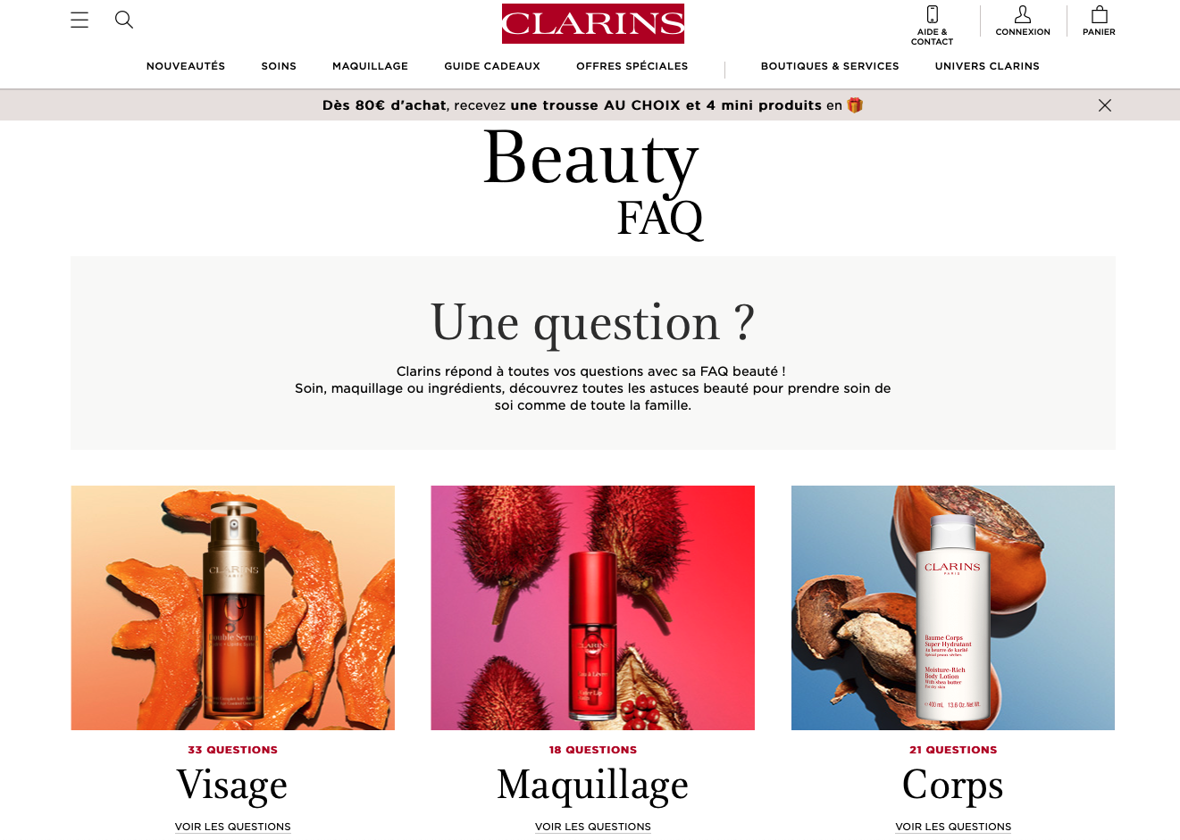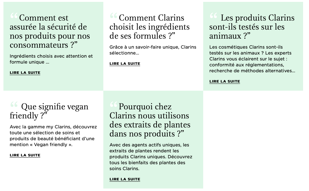 Pages web FAQ CLARINS